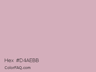 Hex #d4aebb Color is a light rose color and the nearest color is Blossom #dcb4bc. Hex code #d4aebb and RGB value is rgb(212,174,187). In RGB color space, this color is composed of 83% red, 68% green, 73% blue, In CMYK color space, this color is composed of 0% cyan, 18% magenta, 12% yellow , 17% black , In HSL color space, this color has a hue angle of 339° , 31% saturation and 76% lightness.