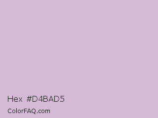 Hex #d4bad5 Color is a light magenta color and the nearest color is Thistle #d8bfd8. Hex code #d4bad5 and RGB value is rgb(212,186,213). In RGB color space, this color is composed of 83% red, 73% green, 84% blue, In CMYK color space, this color is composed of 0% cyan, 13% magenta, 0% yellow , 16% black , In HSL color space, this color has a hue angle of 298° , 24% saturation and 78% lightness.