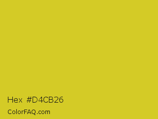 Hex #d4cb26 Color is a normal yellow color and the nearest color is Bird Flower #d4cd16. Hex code #d4cb26 and RGB value is rgb(212,203,38). In RGB color space, this color is composed of 83% red, 80% green, 15% blue, In CMYK color space, this color is composed of 0% cyan, 4% magenta, 82% yellow , 17% black , In HSL color space, this color has a hue angle of 57° , 70% saturation and 49% lightness.
