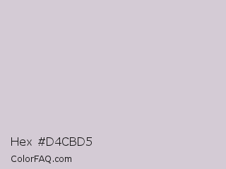 Hex #d4cbd5 Color is a very light magenta color and the nearest color is Light Gray #d3d3d3. Hex code #d4cbd5 and RGB value is rgb(212,203,213). In RGB color space, this color is composed of 83% red, 80% green, 84% blue, In CMYK color space, this color is composed of 0% cyan, 5% magenta, 0% yellow , 16% black , In HSL color space, this color has a hue angle of 294° , 11% saturation and 82% lightness.