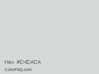 Hex #d4dada Color is a very light cyan color and the nearest color is Iron #d4d7d9. Hex code #d4dada and RGB value is rgb(212,218,218). In RGB color space, this color is composed of 83% red, 85% green, 85% blue, In CMYK color space, this color is composed of 3% cyan, 0% magenta, 0% yellow , 15% black , In HSL color space, this color has a hue angle of 180° , 7% saturation and 84% lightness.