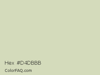 Hex #d4dbbb Color is a light lime color and the nearest color is Tana #d9dcc1. Hex code #d4dbbb and RGB value is rgb(212,219,187). In RGB color space, this color is composed of 83% red, 86% green, 73% blue, In CMYK color space, this color is composed of 3% cyan, 0% magenta, 15% yellow , 14% black , In HSL color space, this color has a hue angle of 73° , 31% saturation and 80% lightness.