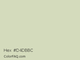Hex #d4dbbc Color is a light lime color and the nearest color is Tana #d9dcc1. Hex code #d4dbbc and RGB value is rgb(212,219,188). In RGB color space, this color is composed of 83% red, 86% green, 74% blue, In CMYK color space, this color is composed of 3% cyan, 0% magenta, 14% yellow , 14% black , In HSL color space, this color has a hue angle of 74° , 30% saturation and 80% lightness.