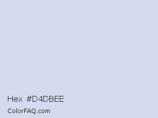 Hex #d4dbee Color is a very light blue color and the nearest color is Link Water #d9e4f5. Hex code #d4dbee and RGB value is rgb(212,219,238). In RGB color space, this color is composed of 83% red, 86% green, 93% blue, In CMYK color space, this color is composed of 11% cyan, 8% magenta, 0% yellow , 7% black , In HSL color space, this color has a hue angle of 224° , 43% saturation and 88% lightness.