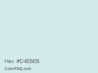 Hex #d4ebeb Color is a very light cyan color and the nearest color is Swans Down #dcf0ea. Hex code #d4ebeb and RGB value is rgb(212,235,235). In RGB color space, this color is composed of 83% red, 92% green, 92% blue, In CMYK color space, this color is composed of 10% cyan, 0% magenta, 0% yellow , 8% black , In HSL color space, this color has a hue angle of 180° , 37% saturation and 88% lightness.