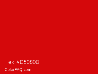 Hex #d5080b Color is a normal red color and the nearest color is Rosso Corsa #d40000. Hex code #d5080b and RGB value is rgb(213,8,11). In RGB color space, this color is composed of 84% red, 3% green, 4% blue, In CMYK color space, this color is composed of 0% cyan, 96% magenta, 95% yellow , 16% black , In HSL color space, this color has a hue angle of 359° , 93% saturation and 43% lightness.