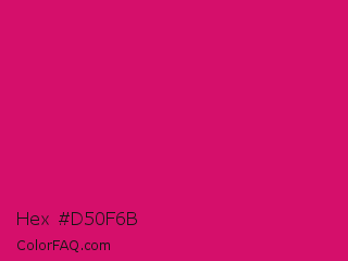 Hex #d50f6b Color is a normal rose color and the nearest color is Dogwood Rose #d71868. Hex code #d50f6b and RGB value is rgb(213,15,107). In RGB color space, this color is composed of 84% red, 6% green, 42% blue, In CMYK color space, this color is composed of 0% cyan, 93% magenta, 50% yellow , 16% black , In HSL color space, this color has a hue angle of 332° , 87% saturation and 45% lightness.