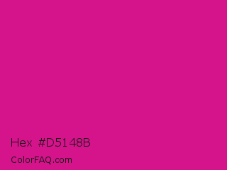 Hex #d5148b Color is a normal magenta color and the nearest color is Vivid Cerise #da1d81. Hex code #d5148b and RGB value is rgb(213,20,139). In RGB color space, this color is composed of 84% red, 8% green, 55% blue, In CMYK color space, this color is composed of 0% cyan, 91% magenta, 35% yellow , 16% black , In HSL color space, this color has a hue angle of 323° , 83% saturation and 46% lightness.