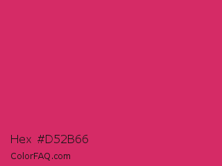 Hex #d52b66 Color is a normal rose color and the nearest color is Cerise Red #de3163. Hex code #d52b66 and RGB value is rgb(213,43,102). In RGB color space, this color is composed of 84% red, 17% green, 40% blue, In CMYK color space, this color is composed of 0% cyan, 80% magenta, 52% yellow , 16% black , In HSL color space, this color has a hue angle of 339° , 67% saturation and 50% lightness.
