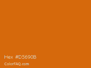 Hex #d5690b Color is a normal orange color and the nearest color is Bamboo #da6304. Hex code #d5690b and RGB value is rgb(213,105,11). In RGB color space, this color is composed of 84% red, 41% green, 4% blue, In CMYK color space, this color is composed of 0% cyan, 51% magenta, 95% yellow , 16% black , In HSL color space, this color has a hue angle of 28° , 90% saturation and 44% lightness.