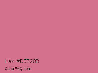 Hex #d5728b Color is a light red color and the nearest color is Charm #d47494. Hex code #d5728b and RGB value is rgb(213,114,139). In RGB color space, this color is composed of 84% red, 45% green, 55% blue, In CMYK color space, this color is composed of 0% cyan, 46% magenta, 35% yellow , 16% black , In HSL color space, this color has a hue angle of 345° , 54% saturation and 64% lightness.