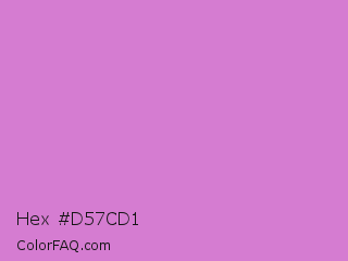 Hex #d57cd1 Color is a light magenta color and the nearest color is French Mauve #d473d4. Hex code #d57cd1 and RGB value is rgb(213,124,209). In RGB color space, this color is composed of 84% red, 49% green, 82% blue, In CMYK color space, this color is composed of 0% cyan, 42% magenta, 2% yellow , 16% black , In HSL color space, this color has a hue angle of 303° , 51% saturation and 66% lightness.
