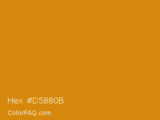 Hex #d5880b Color is a normal orange color and the nearest color is Meteor #d07d12. Hex code #d5880b and RGB value is rgb(213,136,11). In RGB color space, this color is composed of 84% red, 53% green, 4% blue, In CMYK color space, this color is composed of 0% cyan, 36% magenta, 95% yellow , 16% black , In HSL color space, this color has a hue angle of 37° , 90% saturation and 44% lightness.