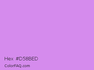 Hex #d58bed Color is a light purple color and the nearest color is Bright Lilac #d891ef. Hex code #d58bed and RGB value is rgb(213,139,237). In RGB color space, this color is composed of 84% red, 55% green, 93% blue, In CMYK color space, this color is composed of 10% cyan, 41% magenta, 0% yellow , 7% black , In HSL color space, this color has a hue angle of 285° , 73% saturation and 74% lightness.