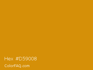 Hex #d59008 Color is a normal orange color and the nearest color is Harvest Gold #da9100. Hex code #d59008 and RGB value is rgb(213,144,8). In RGB color space, this color is composed of 84% red, 56% green, 3% blue, In CMYK color space, this color is composed of 0% cyan, 32% magenta, 96% yellow , 16% black , In HSL color space, this color has a hue angle of 40° , 93% saturation and 43% lightness.