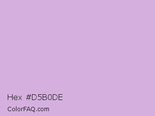 Hex #d5b0de Color is a light purple color and the nearest color is Pink Lavender #d8b2d1. Hex code #d5b0de and RGB value is rgb(213,176,222). In RGB color space, this color is composed of 84% red, 69% green, 87% blue, In CMYK color space, this color is composed of 4% cyan, 21% magenta, 0% yellow , 13% black , In HSL color space, this color has a hue angle of 288° , 41% saturation and 78% lightness.