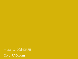 Hex #d5b308 Color is a normal yellow color and the nearest color is Galliano #dcb20c. Hex code #d5b308 and RGB value is rgb(213,179,8). In RGB color space, this color is composed of 84% red, 70% green, 3% blue, In CMYK color space, this color is composed of 0% cyan, 16% magenta, 96% yellow , 16% black , In HSL color space, this color has a hue angle of 50° , 93% saturation and 43% lightness.