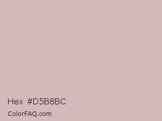 Hex #d5b8bc Color is a light red color and the nearest color is Cold Turkey #cebaba. Hex code #d5b8bc and RGB value is rgb(213,184,188). In RGB color space, this color is composed of 84% red, 72% green, 74% blue, In CMYK color space, this color is composed of 0% cyan, 14% magenta, 12% yellow , 16% black , In HSL color space, this color has a hue angle of 352° , 26% saturation and 78% lightness.