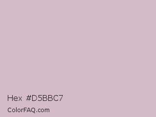 Hex #d5bbc7 Color is a light rose color and the nearest color is Pink Flare #e1c0c8. Hex code #d5bbc7 and RGB value is rgb(213,187,199). In RGB color space, this color is composed of 84% red, 73% green, 78% blue, In CMYK color space, this color is composed of 0% cyan, 12% magenta, 7% yellow , 16% black , In HSL color space, this color has a hue angle of 332° , 24% saturation and 78% lightness.