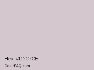 Hex #d5c7ce Color is a very light rose color and the nearest color is Maverick #d8c2d5. Hex code #d5c7ce and RGB value is rgb(213,199,206). In RGB color space, this color is composed of 84% red, 78% green, 81% blue, In CMYK color space, this color is composed of 0% cyan, 7% magenta, 3% yellow , 16% black , In HSL color space, this color has a hue angle of 330° , 14% saturation and 81% lightness.