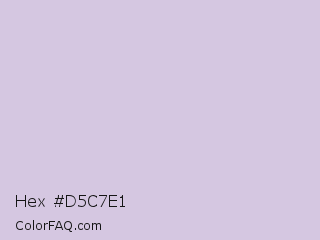 Hex #d5c7e1 Color is a very light purple color and the nearest color is Languid Lavender #d6cadd. Hex code #d5c7e1 and RGB value is rgb(213,199,225). In RGB color space, this color is composed of 84% red, 78% green, 88% blue, In CMYK color space, this color is composed of 5% cyan, 12% magenta, 0% yellow , 12% black , In HSL color space, this color has a hue angle of 272° , 30% saturation and 83% lightness.
