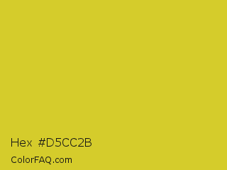 Hex #d5cc2b Color is a normal yellow color and the nearest color is Sunflower #e4d422. Hex code #d5cc2b and RGB value is rgb(213,204,43). In RGB color space, this color is composed of 84% red, 80% green, 17% blue, In CMYK color space, this color is composed of 0% cyan, 4% magenta, 80% yellow , 16% black , In HSL color space, this color has a hue angle of 57° , 67% saturation and 50% lightness.