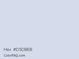 Hex #d5dbeb Color is a very light blue color and the nearest color is Geyser #d4dfe2. Hex code #d5dbeb and RGB value is rgb(213,219,235). In RGB color space, this color is composed of 84% red, 86% green, 92% blue, In CMYK color space, this color is composed of 9% cyan, 7% magenta, 0% yellow , 8% black , In HSL color space, this color has a hue angle of 224° , 35% saturation and 88% lightness.