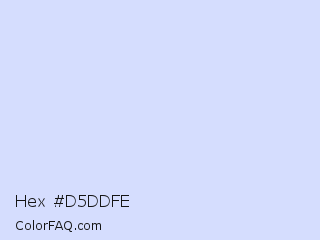 Hex #d5ddfe Color is a very light blue color and the nearest color is Hawkes Blue #d4e2fc. Hex code #d5ddfe and RGB value is rgb(213,221,254). In RGB color space, this color is composed of 84% red, 87% green, 100% blue, In CMYK color space, this color is composed of 16% cyan, 13% magenta, 0% yellow , 0% black , In HSL color space, this color has a hue angle of 228° , 95% saturation and 92% lightness.