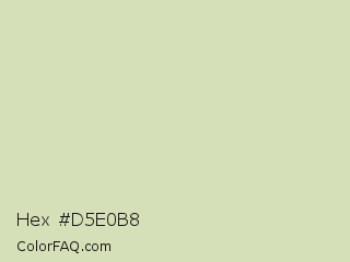 Hex #d5e0b8 Color is a light lime color and the nearest color is Tana #d9dcc1. Hex code #d5e0b8 and RGB value is rgb(213,224,184). In RGB color space, this color is composed of 84% red, 88% green, 72% blue, In CMYK color space, this color is composed of 5% cyan, 0% magenta, 18% yellow , 12% black , In HSL color space, this color has a hue angle of 77° , 39% saturation and 80% lightness.