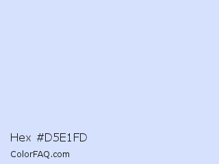 Hex #d5e1fd Color is a very light blue color and the nearest color is Hawkes Blue #d4e2fc. Hex code #d5e1fd and RGB value is rgb(213,225,253). In RGB color space, this color is composed of 84% red, 88% green, 99% blue, In CMYK color space, this color is composed of 16% cyan, 11% magenta, 0% yellow , 1% black , In HSL color space, this color has a hue angle of 222° , 91% saturation and 91% lightness.