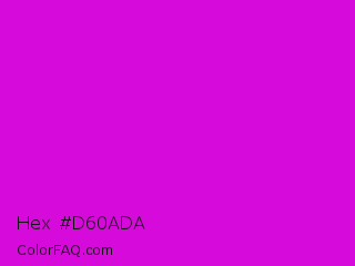 Hex #d60ada Color is a normal magenta color and the nearest color is Deep Magenta #cc00cc. Hex code #d60ada and RGB value is rgb(214,10,218). In RGB color space, this color is composed of 84% red, 4% green, 85% blue, In CMYK color space, this color is composed of 2% cyan, 95% magenta, 0% yellow , 15% black , In HSL color space, this color has a hue angle of 299° , 91% saturation and 45% lightness.