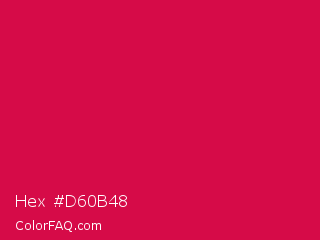 Hex #d60b48 Color is a normal rose color and the nearest color is Debian Red #d70a53. Hex code #d60b48 and RGB value is rgb(214,11,72). In RGB color space, this color is composed of 84% red, 4% green, 28% blue, In CMYK color space, this color is composed of 0% cyan, 95% magenta, 66% yellow , 16% black , In HSL color space, this color has a hue angle of 342° , 90% saturation and 44% lightness.
