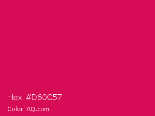 Hex #d60c57 Color is a normal rose color and the nearest color is Debian Red #d70a53. Hex code #d60c57 and RGB value is rgb(214,12,87). In RGB color space, this color is composed of 84% red, 5% green, 34% blue, In CMYK color space, this color is composed of 0% cyan, 94% magenta, 59% yellow , 16% black , In HSL color space, this color has a hue angle of 338° , 89% saturation and 44% lightness.