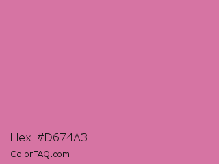 Hex #d674a3 Color is a light rose color and the nearest color is Wild Orchid #d470a2. Hex code #d674a3 and RGB value is rgb(214,116,163). In RGB color space, this color is composed of 84% red, 45% green, 64% blue, In CMYK color space, this color is composed of 0% cyan, 46% magenta, 24% yellow , 16% black , In HSL color space, this color has a hue angle of 331° , 54% saturation and 65% lightness.