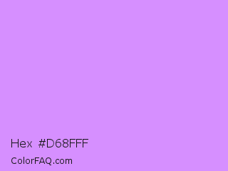 Hex #d68fff Color is a light purple color and the nearest color is Pale Violet #cc99ff. Hex code #d68fff and RGB value is rgb(214,143,255). In RGB color space, this color is composed of 84% red, 56% green, 100% blue, In CMYK color space, this color is composed of 16% cyan, 44% magenta, 0% yellow , 0% black , In HSL color space, this color has a hue angle of 278° , 100% saturation and 78% lightness.