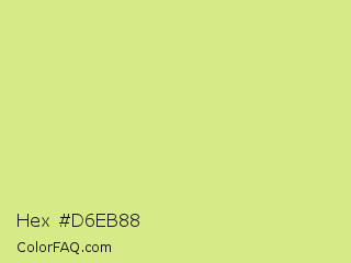 Hex #d6eb88 Color is a light lime color and the nearest color is Mindaro #e3f988. Hex code #d6eb88 and RGB value is rgb(214,235,136). In RGB color space, this color is composed of 84% red, 92% green, 53% blue, In CMYK color space, this color is composed of 9% cyan, 0% magenta, 42% yellow , 8% black , In HSL color space, this color has a hue angle of 73° , 71% saturation and 73% lightness.