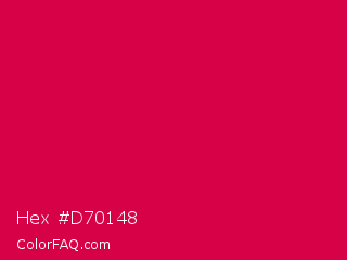 Hex #d70148 Color is a normal rose color and the nearest color is UA Red #d9004c. Hex code #d70148 and RGB value is rgb(215,1,72). In RGB color space, this color is composed of 84% red, 0% green, 28% blue, In CMYK color space, this color is composed of 0% cyan, 100% magenta, 67% yellow , 16% black , In HSL color space, this color has a hue angle of 340° , 99% saturation and 42% lightness.