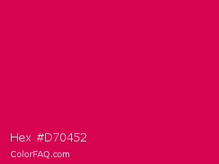 Hex #d70452 Color is a normal rose color and the nearest color is Debian Red #d70a53. Hex code #d70452 and RGB value is rgb(215,4,82). In RGB color space, this color is composed of 84% red, 2% green, 32% blue, In CMYK color space, this color is composed of 0% cyan, 98% magenta, 62% yellow , 16% black , In HSL color space, this color has a hue angle of 338° , 96% saturation and 43% lightness.