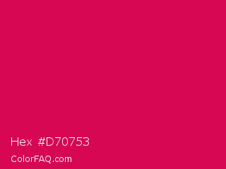 Hex #d70753 Color is a normal rose color and the nearest color is Debian Red #d70a53. Hex code #d70753 and RGB value is rgb(215,7,83). In RGB color space, this color is composed of 84% red, 3% green, 33% blue, In CMYK color space, this color is composed of 0% cyan, 97% magenta, 61% yellow , 16% black , In HSL color space, this color has a hue angle of 338° , 94% saturation and 44% lightness.