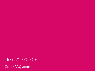 Hex #d70768 Color is a normal rose color and the nearest color is Ruby #e0115f. Hex code #d70768 and RGB value is rgb(215,7,104). In RGB color space, this color is composed of 84% red, 3% green, 41% blue, In CMYK color space, this color is composed of 0% cyan, 97% magenta, 52% yellow , 16% black , In HSL color space, this color has a hue angle of 332° , 94% saturation and 44% lightness.