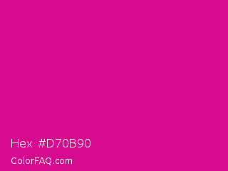 Hex #d70b90 Color is a normal magenta color and the nearest color is Red Violet #c71585. Hex code #d70b90 and RGB value is rgb(215,11,144). In RGB color space, this color is composed of 84% red, 4% green, 56% blue, In CMYK color space, this color is composed of 0% cyan, 95% magenta, 33% yellow , 16% black , In HSL color space, this color has a hue angle of 321° , 90% saturation and 44% lightness.
