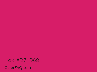 Hex #d71d68 Color is a normal rose color and the nearest color is Dogwood Rose #d71868. Hex code #d71d68 and RGB value is rgb(215,29,104). In RGB color space, this color is composed of 84% red, 11% green, 41% blue, In CMYK color space, this color is composed of 0% cyan, 87% magenta, 52% yellow , 16% black , In HSL color space, this color has a hue angle of 336° , 76% saturation and 48% lightness.