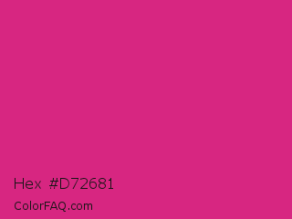 Hex #d72681 Color is a normal rose color and the nearest color is Vivid Cerise #da1d81. Hex code #d72681 and RGB value is rgb(215,38,129). In RGB color space, this color is composed of 84% red, 15% green, 51% blue, In CMYK color space, this color is composed of 0% cyan, 82% magenta, 40% yellow , 16% black , In HSL color space, this color has a hue angle of 329° , 70% saturation and 50% lightness.