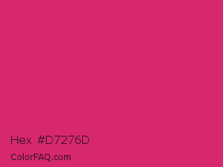 Hex #d7276d Color is a normal rose color and the nearest color is Razzmatazz #e3256b. Hex code #d7276d and RGB value is rgb(215,39,109). In RGB color space, this color is composed of 84% red, 15% green, 43% blue, In CMYK color space, this color is composed of 0% cyan, 82% magenta, 49% yellow , 16% black , In HSL color space, this color has a hue angle of 336° , 69% saturation and 50% lightness.