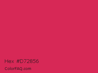 Hex #d72856 Color is a normal rose color and the nearest color is Amaranth #e52b50. Hex code #d72856 and RGB value is rgb(215,40,86). In RGB color space, this color is composed of 84% red, 16% green, 34% blue, In CMYK color space, this color is composed of 0% cyan, 81% magenta, 60% yellow , 16% black , In HSL color space, this color has a hue angle of 344° , 69% saturation and 50% lightness.