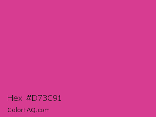Hex #d73c91 Color is a normal magenta color and the nearest color is Pink Pantone #d74894. Hex code #d73c91 and RGB value is rgb(215,60,145). In RGB color space, this color is composed of 84% red, 24% green, 57% blue, In CMYK color space, this color is composed of 0% cyan, 72% magenta, 33% yellow , 16% black , In HSL color space, this color has a hue angle of 327° , 66% saturation and 54% lightness.