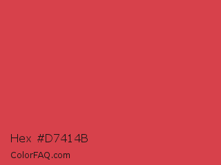 Hex #d7414b Color is a normal red color and the nearest color is English Vermillion #cc474b. Hex code #d7414b and RGB value is rgb(215,65,75). In RGB color space, this color is composed of 84% red, 25% green, 29% blue, In CMYK color space, this color is composed of 0% cyan, 70% magenta, 65% yellow , 16% black , In HSL color space, this color has a hue angle of 356° , 65% saturation and 55% lightness.