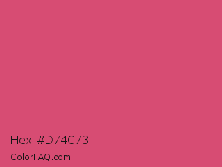 Hex #d74c73 Color is a normal rose color and the nearest color is Cabaret #d94972. Hex code #d74c73 and RGB value is rgb(215,76,115). In RGB color space, this color is composed of 84% red, 30% green, 45% blue, In CMYK color space, this color is composed of 0% cyan, 65% magenta, 47% yellow , 16% black , In HSL color space, this color has a hue angle of 343° , 63% saturation and 57% lightness.