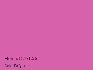 Hex #d761aa Color is a light magenta color and the nearest color is Super Pink #cf6ba9. Hex code #d761aa and RGB value is rgb(215,97,170). In RGB color space, this color is composed of 84% red, 38% green, 67% blue, In CMYK color space, this color is composed of 0% cyan, 55% magenta, 21% yellow , 16% black , In HSL color space, this color has a hue angle of 323° , 60% saturation and 61% lightness.