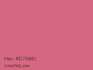 Hex #d76881 Color is a light red color and the nearest color is Cinnamon Satin #cd607e. Hex code #d76881 and RGB value is rgb(215,104,129). In RGB color space, this color is composed of 84% red, 41% green, 51% blue, In CMYK color space, this color is composed of 0% cyan, 52% magenta, 40% yellow , 16% black , In HSL color space, this color has a hue angle of 346° , 58% saturation and 63% lightness.